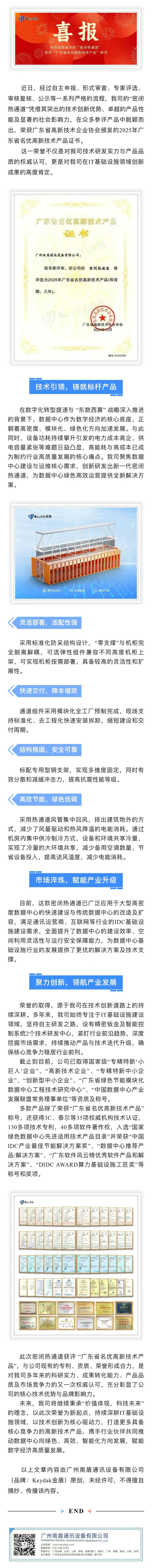 喜报|我司密闭热通道获评“广东省名优高新技术产品”称号